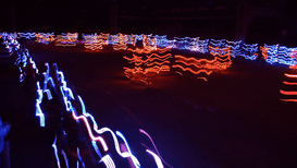Mit Einbruch der Dämmerung ab ca. 17 Uhr wird es dann auch in der Sporthalle dunkel: Dann sausen und schweben lustig bunte Licht-Figuren umher.