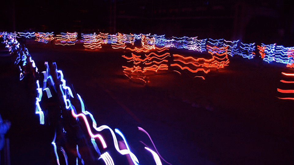 Auf Inlineskate oder Rollschuh rollen sich alle gemeinsam ein und schmücken sich dann mit bunt leuchtenden Knicklichtern.