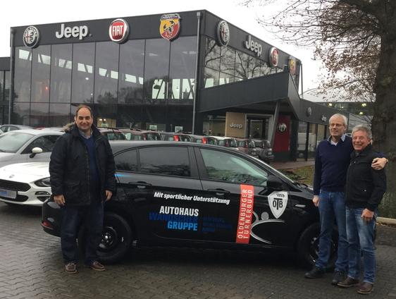Dank der freundlichen Unterstützung Dritter und der Thomas Wandscher Autovertriebs GmbH konnte dem OTB in diesen Tagen ein Dienstfahrzeug für die Basketballabteilung übergeben werden. Durch die Einstellung von Dimitrions Polychroniadis (links im Bild) als weiteren hauptamtlichen Jugendtrainer der Basketballabteilung wurde diese Anschaffung erforderlich, um diesem zu Beginn seiner Tätigkeit und nach seinem Umzug nach Oldenburg, die Fahrten zu den Trainingsstätten und Auswärtsspielen zu ermöglichen. Ulrich Scheler, Leiter der OTB-Basketballabteilung (rechts) bedankt sich bei der Übergabe bei Thomas Wandscher für dessen Unterstützung.