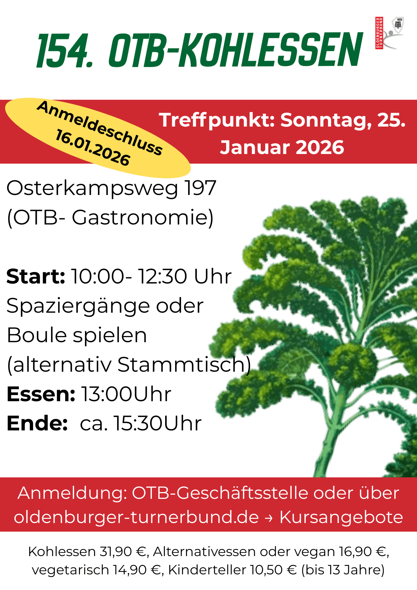 Am Sonntag, 25.01.2026 ist es wieder so weit – wir laden euch herzlich zum traditionellen OTB-Kohlessen ein!